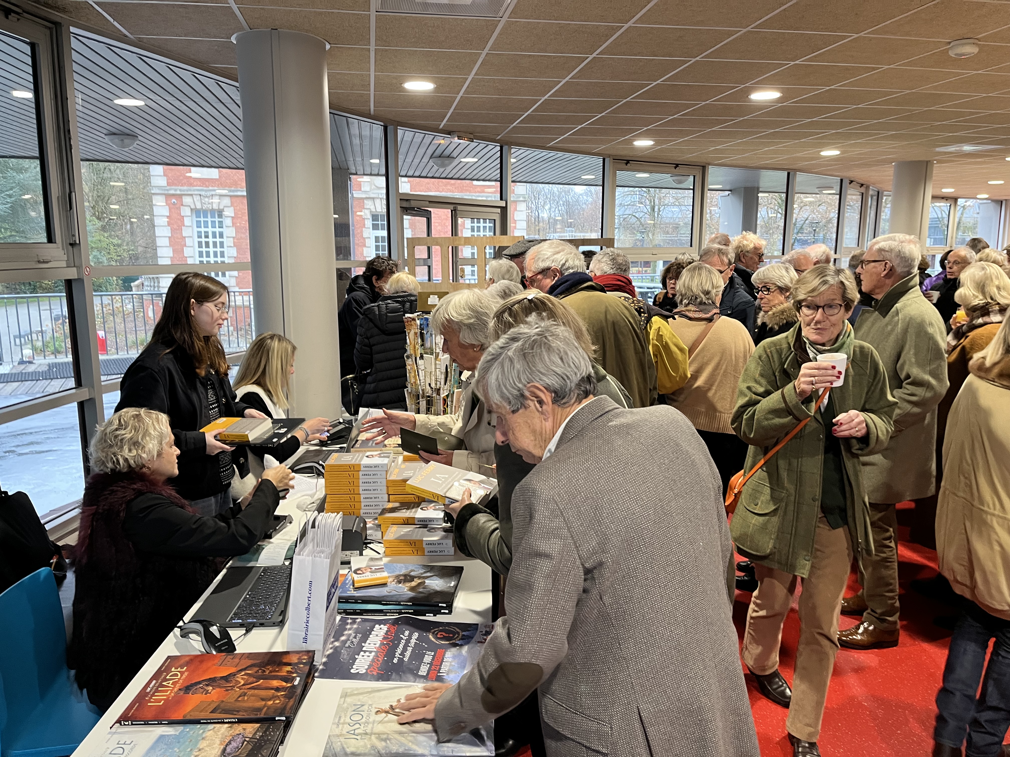Entre les 2 séances (de 16h à 16h30), nous nous retrouvons à la cafétéria autour du conférencier pour un moment de convivialité : vente de livres avec notre partenaire